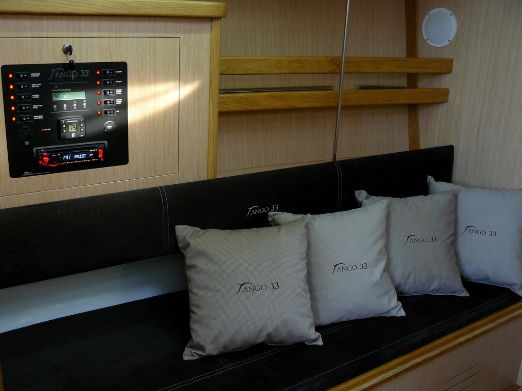 Jacht TANGO 33 - największy model z całej serii jachtów typu Tango o klasycznej i harmonijnej lini kadłuba. Bardzo przestronne wnętrze z 3 zamykanymi kabinami oraz udogodnieniami typu klimatyzacja, ogrzewanie, lodówka, ciepła woda, prysznic, toaleta morska elektryczna dają maksimum komfortu bytowania. Bezpieczeństwo zapewnia system refowania grota z kokpitu. Jacht Tango 33 to idealny kompromis doskonałych walorów nautycznych i hotelowych. Jest to pierwsze TANGO 33 w ofercie firm czarterowych na Mazurach !!! Jesteśmy pewni, że wspaniale dopełni popularną serię modelu "TANGO" na Mazurach.